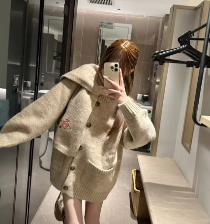こちらも本家に同じデザインのものがあるマフラー付きニット。