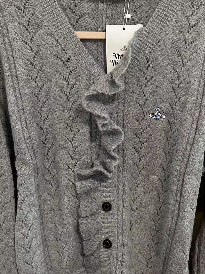 羽織ものなどに着まわしやすそうな透かし編みのカーディガンです。
