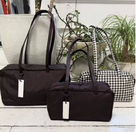 流行のスクエアボストンバッグもありました。