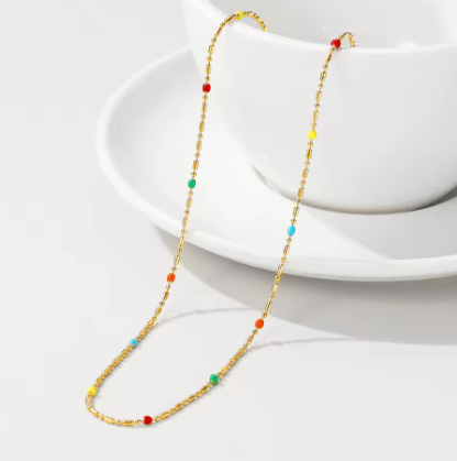 ステンレス&天然石の華奢ネックレス!重ね付けにも