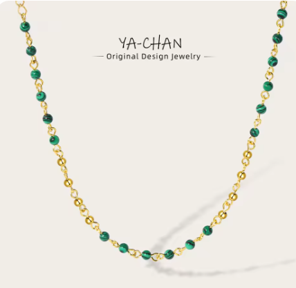 マラカイトの深いグリーンとゴールドのコンビネーションも可愛い。