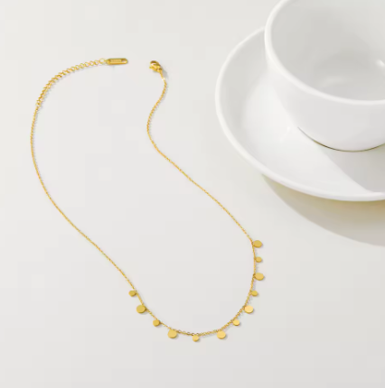 こんな華奢コインがしゃらしゃら揺れるネックレスはいかがでしょうか。