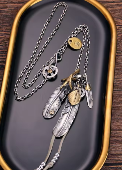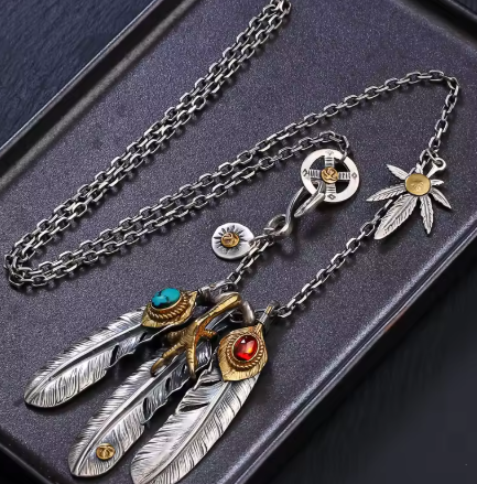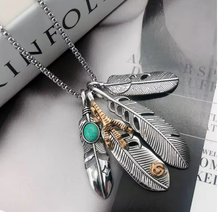 フェザーモチーフのネイティブアメリカン風なネックレスです。