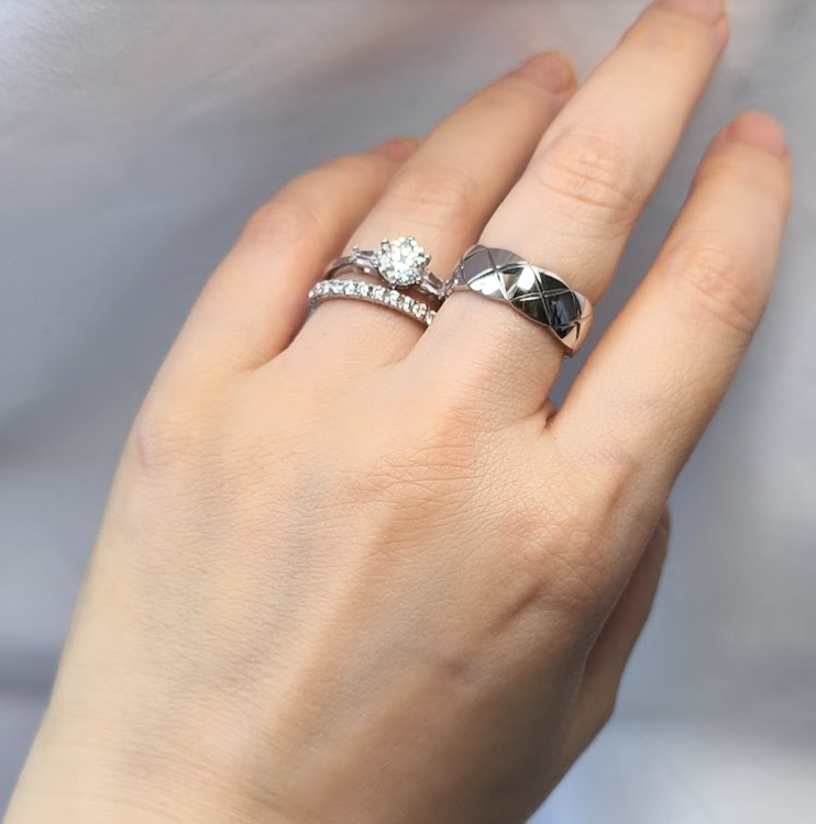 私も似たようなモアッサナイトリングを購入しました。
