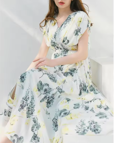 春服と言うことでしたので、こんな華やかなワンピースはいかがでしょうか。