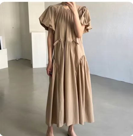 フレンチスリーブ気味なお袖で上半身のボリュームをうまくカバー。