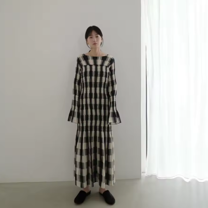 一見シンプルなワンピでも生地の揺れ方や光沢と