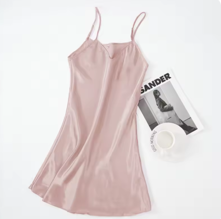 こちらはサテン生地のドレープが美しいブラウンワンピース。