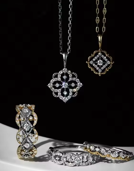 日本のスタージュエリーのVINTAGE LACEコレクション風でどれも綺麗。