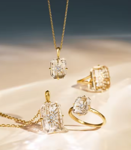 透明クリスタルにストーンやゴールドの装飾をあしらい