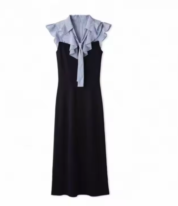 シャツ風の素材とエレガントなマーメイド型スカートのドッキングワンピースです。