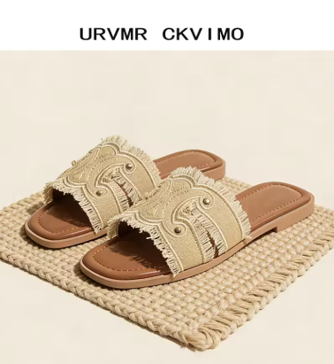 かごバッグなどに似合いそうなデニム素材のサンダルです。