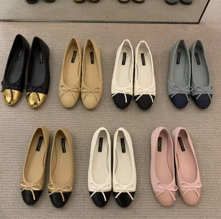 シャネル風のコンビバレエで、ロゴなどはありませんが