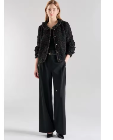 こちらはウールのツイード風な素材のテーパードパンツ。