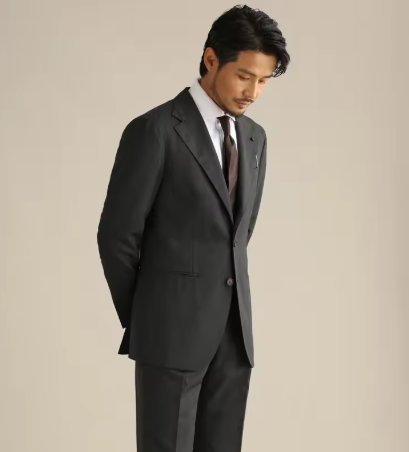 約10cmの存在感のある幅広ラペルのクラシック寄りのデザイン。