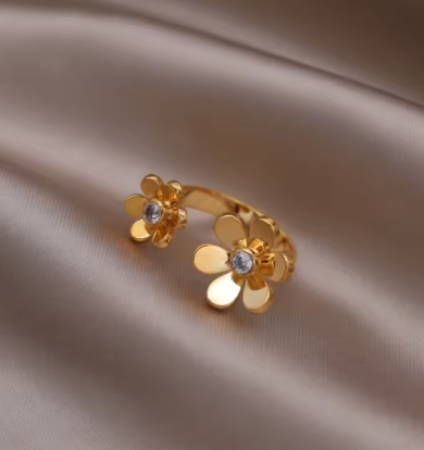 2連のオープンリングで、手元にお花が咲いたようで可愛いです。