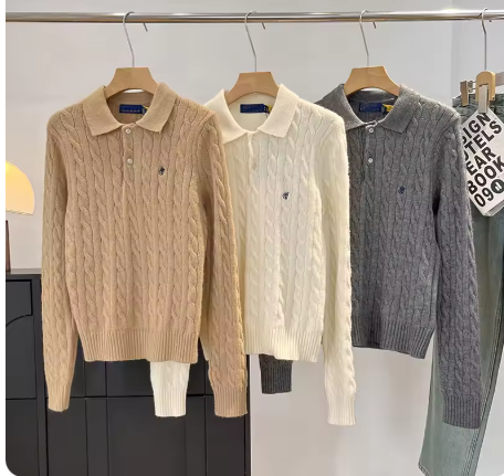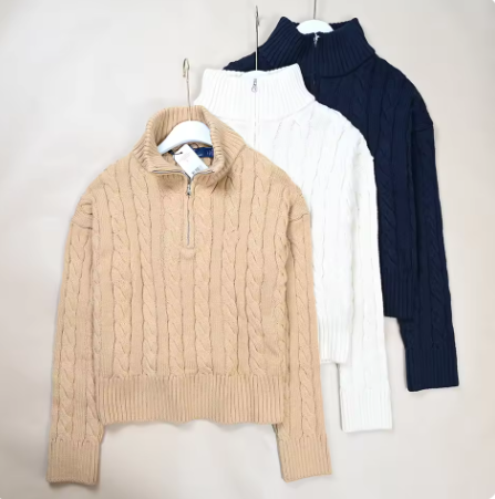 今回ご紹介いただいてるポニー刺繍の長袖コットンケーブルニットはリピ買いしています。