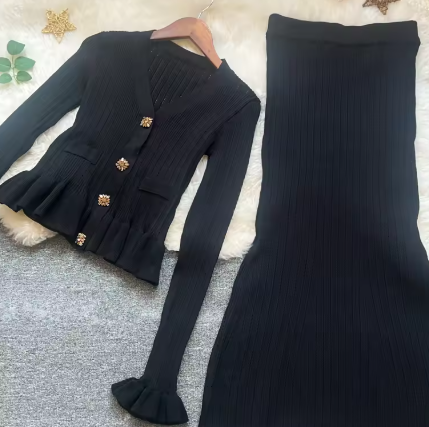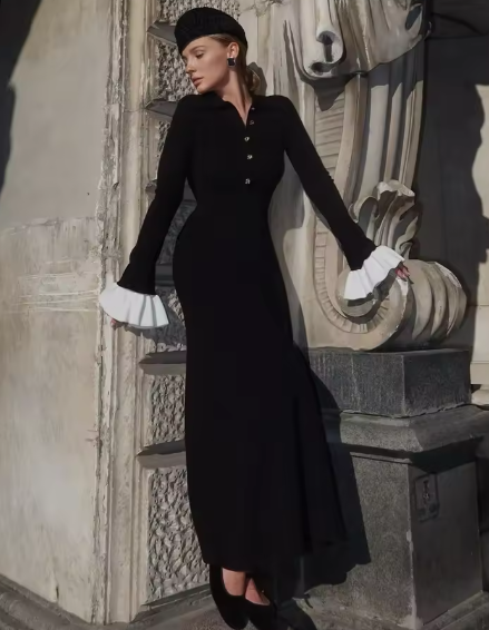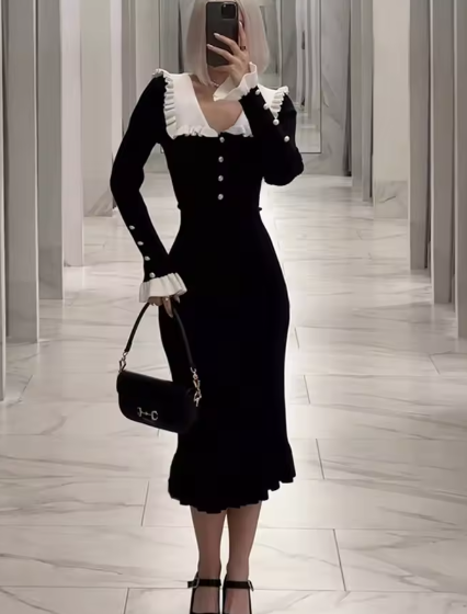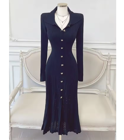 着痩せ・スタイルアップ効果の高いフランス風ニットワンピ