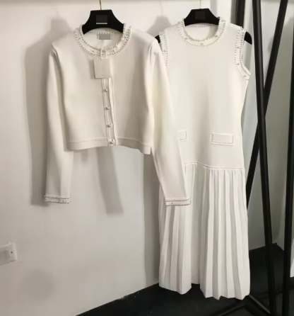 白襟が清楚なニットワンピースです。