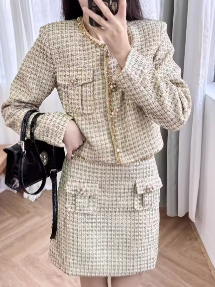 ツイードの凸凹したテクスチャが光を吸い込みリッチな雰囲気で、