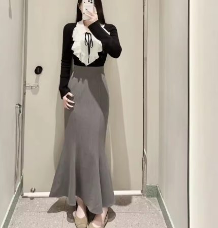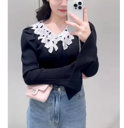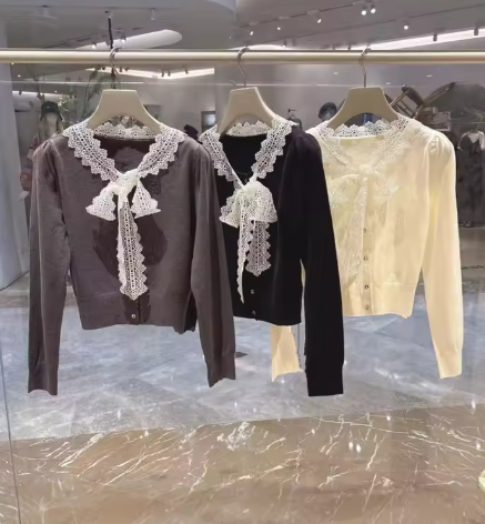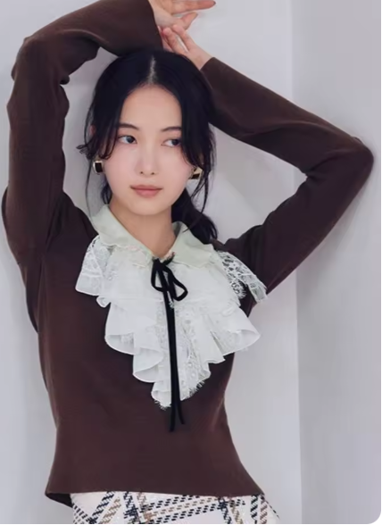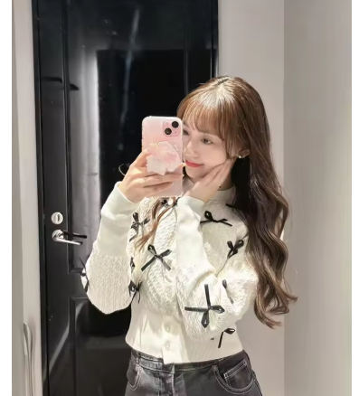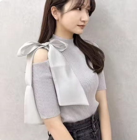 肩のチラ見せと大きなリボンがエレガントなニットです。