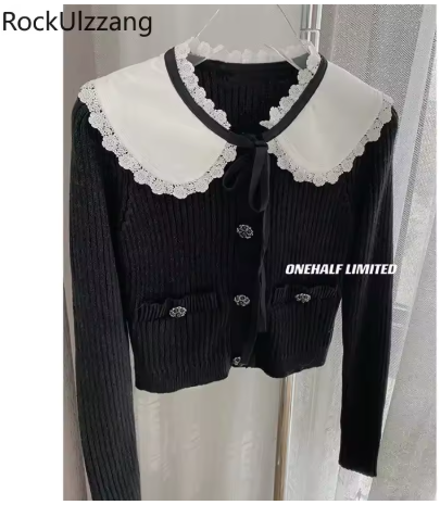 大きな白ラペルにリボンのボウタイ風デザインがクラシカルでかわいい。