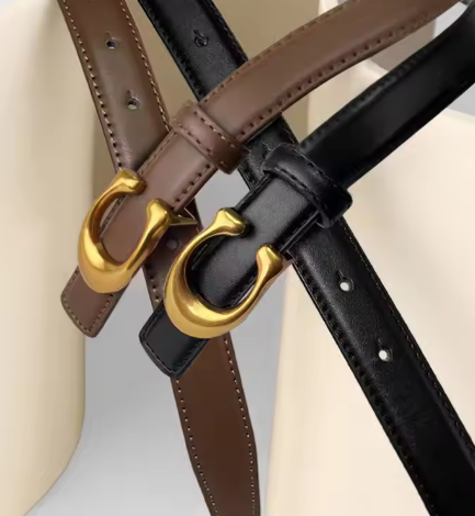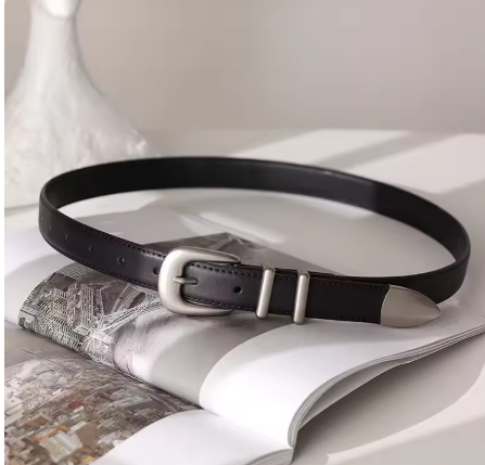 ハトメが印象的なダブルのベルトでちょっと辛口なモード系。