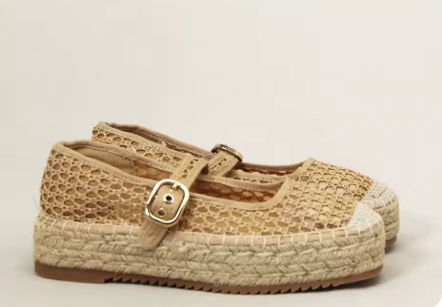 ナチュラルなラフィア素材のようなエスパドリーユ風のバレエシューズです。