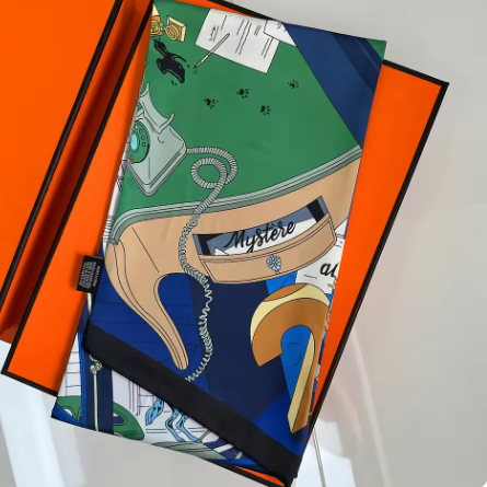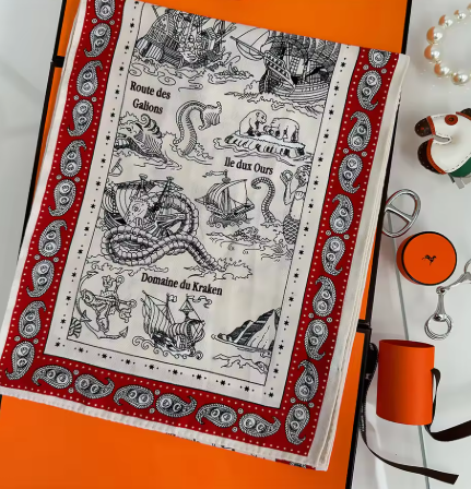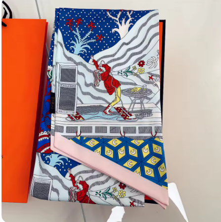 エルメスの有名な細長スカーフ、ツイリーの幅広め&長めのスカーフで