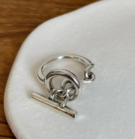 モダンでなめらかなトグルモチーフのリングで