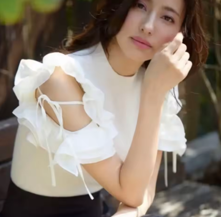ふんわりとした二重シフォンのスカートが揺れる可憐なデザイン。