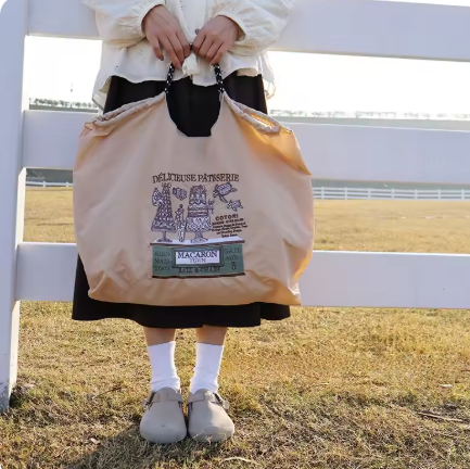 アウトドアにも使えそうなポケッタブルトートバッグです。