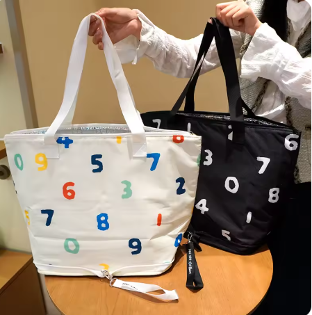 アルミ蒸着素材で保温や保冷もできて、上はしっかりファスナーで閉じられます。