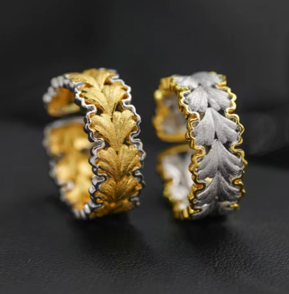 こちらはイチョウの葉をモチーフにした全周デザインのリング。