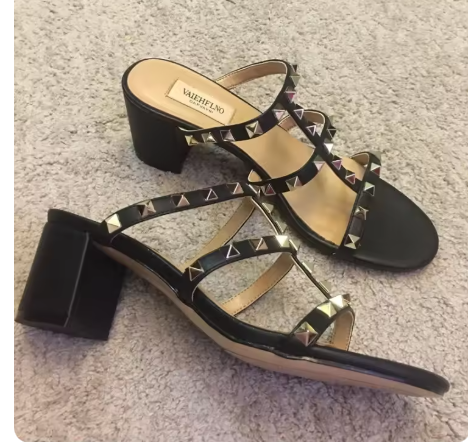 キラキラのピラミッドスタッズが可愛いサンダルです。