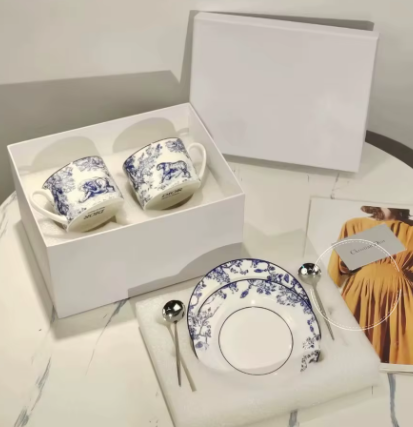 ディオールを思わせるトワルドゥジュイ柄のカップいろいろです。