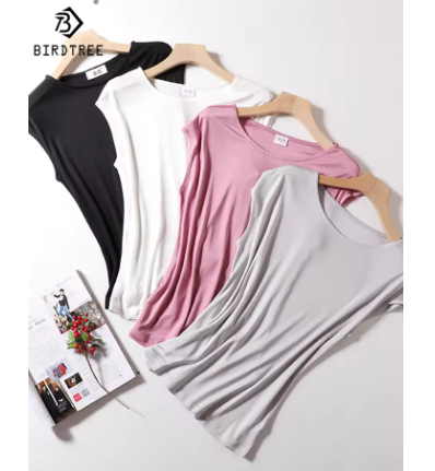 30% マルベリーシルクと合成繊維のシンプルなTシャツです。