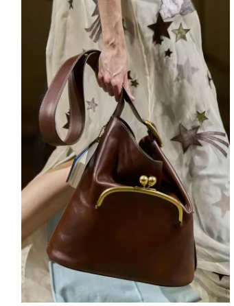 こちらもがま口ポケットのバケットバッグ。