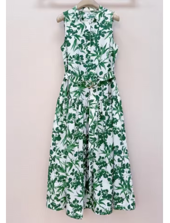 白地に鮮やかなグリーンのボタニカル柄。