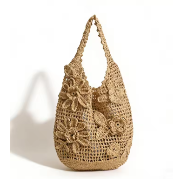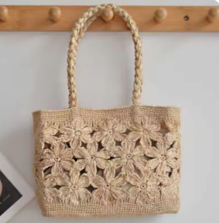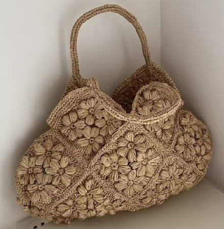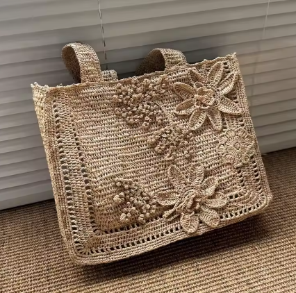 2026新作、フラワーアップリケラフィアトート風です。