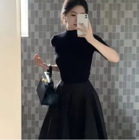 一番最初のスカートと、ニットの黒を合わせた例です。