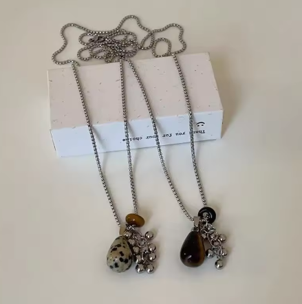 こちらもダルメシアンジャスパーとタイガーアイのネックレス。
