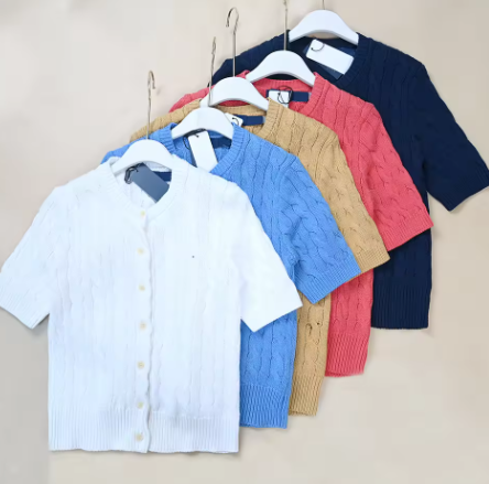 女性用のポニー刺繍入りケーブルカーディガンです。